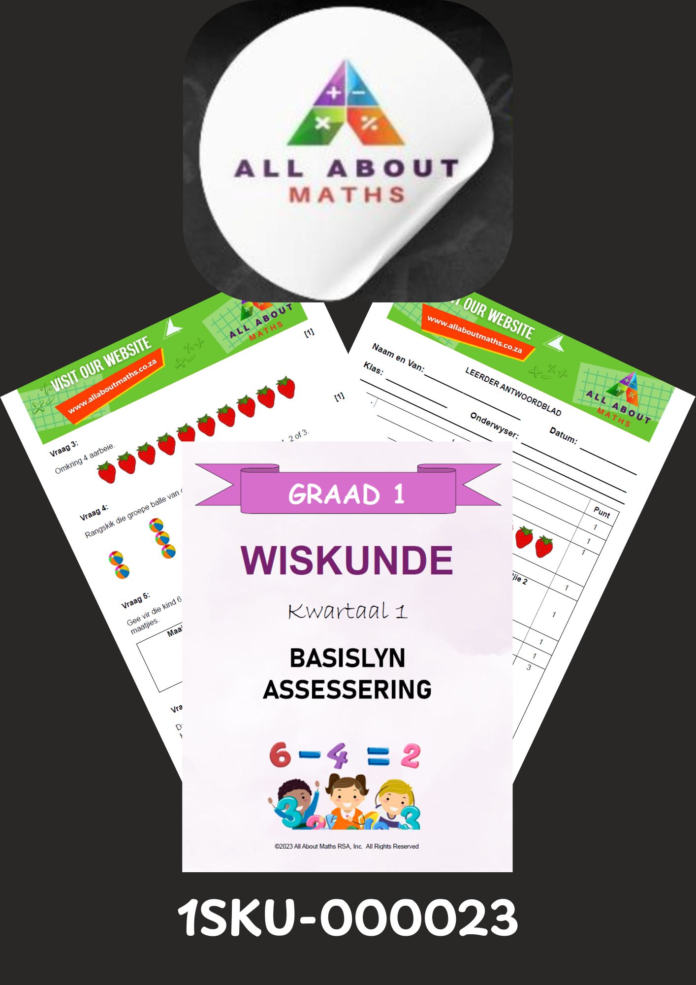 Dit dek noodsaaklike konsepte soos telling, ontbrekende getalle, groepeer, eenvoudige optel- en aftreksomme, en probleemoplossing — en gee ‘n duidelike prentjie van elke leerder se wiskundige gereedheid.