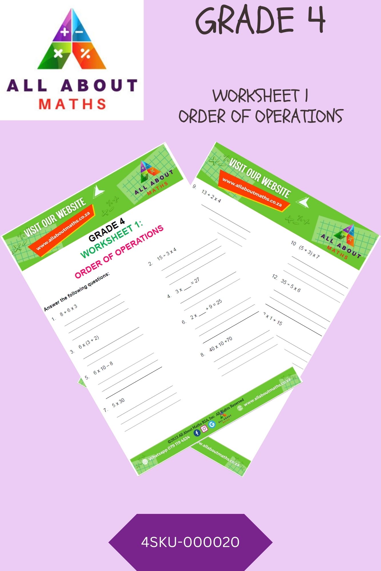 The worksheet contains 14 problems on the order of operations, designed to help learners complete calculations in the correct sequence