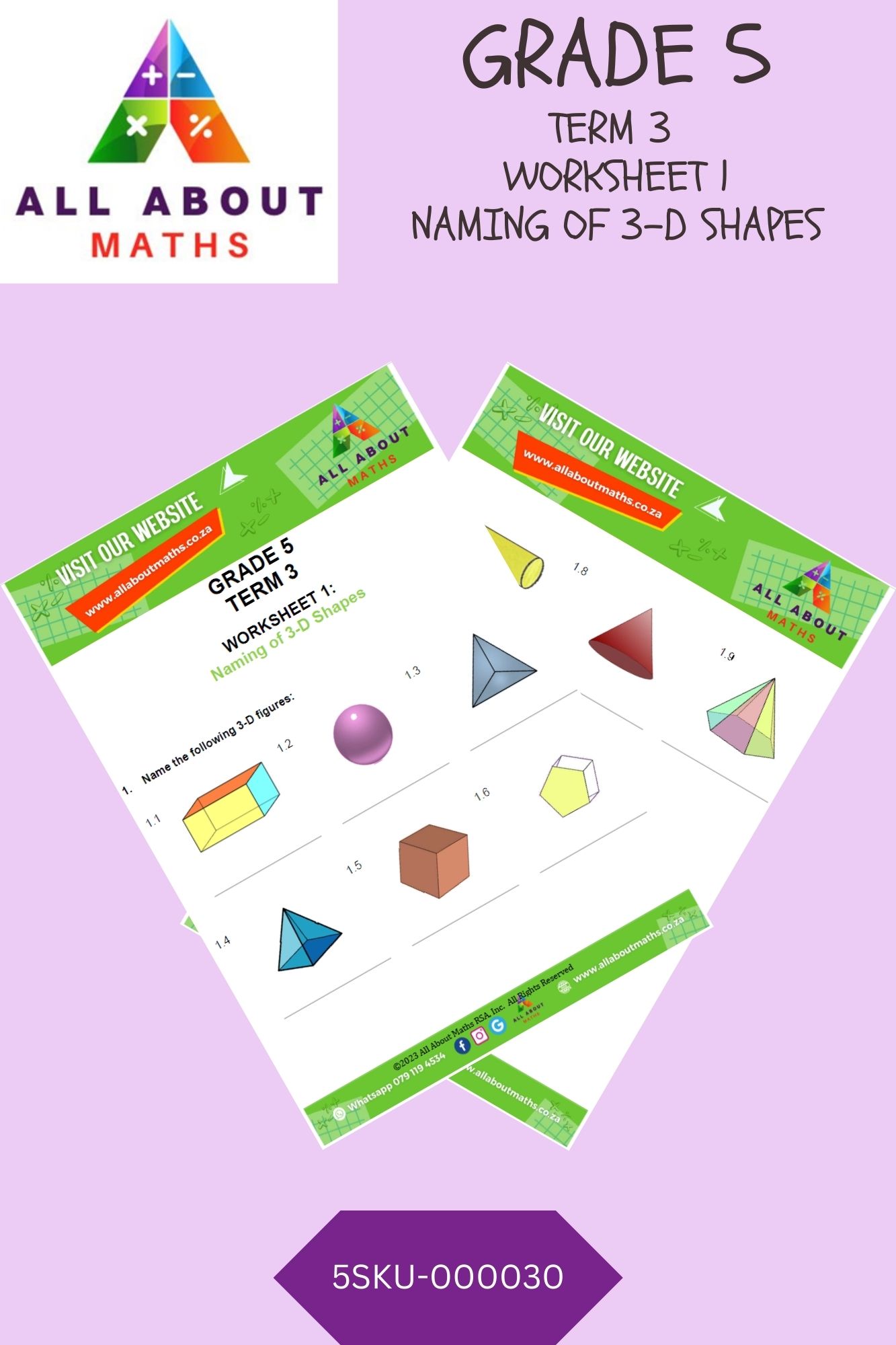 The “Grade 5 – Worksheet 1 – Naming 3D Shapes” is a math exercise for Grade 5 students, focusing on identifying and naming three-dimensional (3D) shapes.